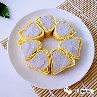 8. 当当当…可以拉丝的芝心香芋卷就做好啦。