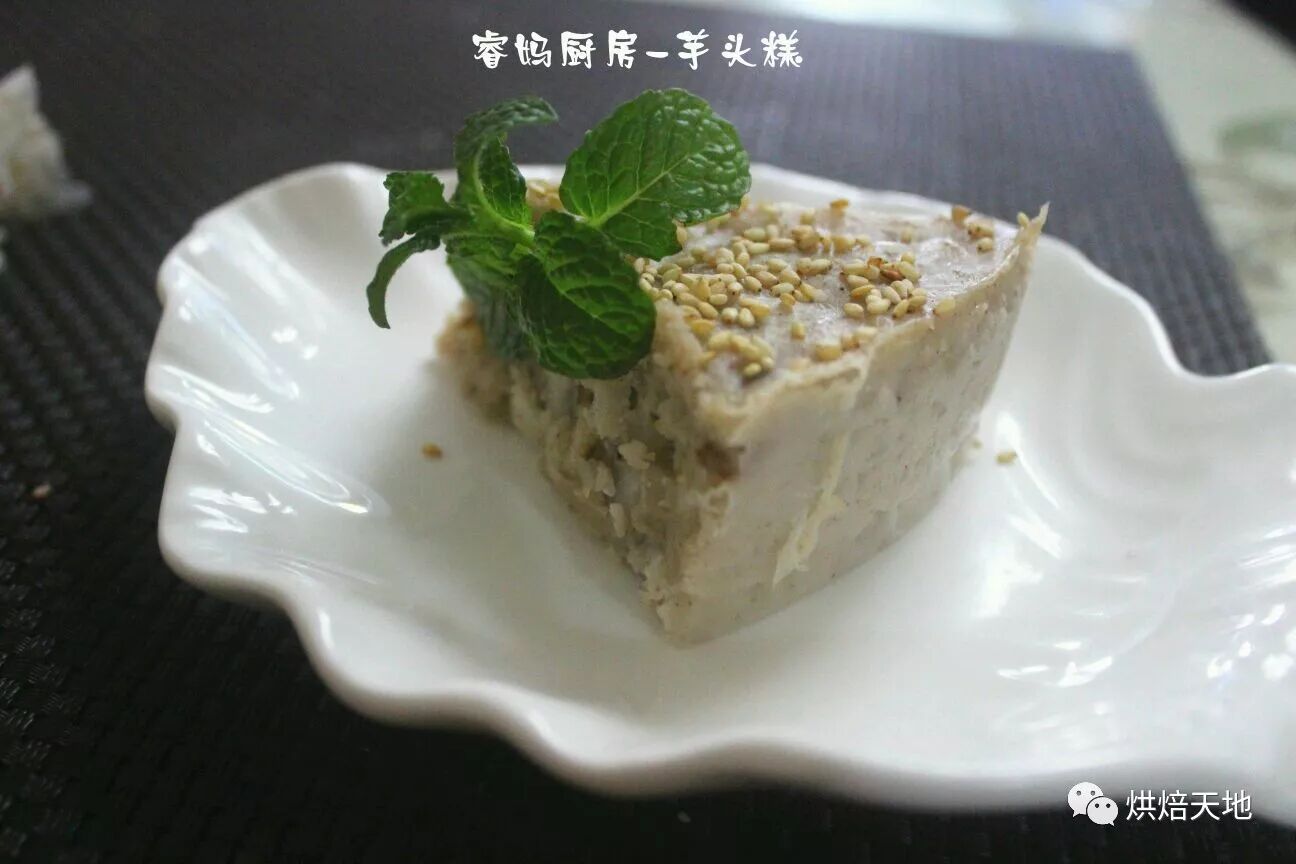 11. 切一块再加几片薄荷叶摆盘,高大上的芋头糕有木有
