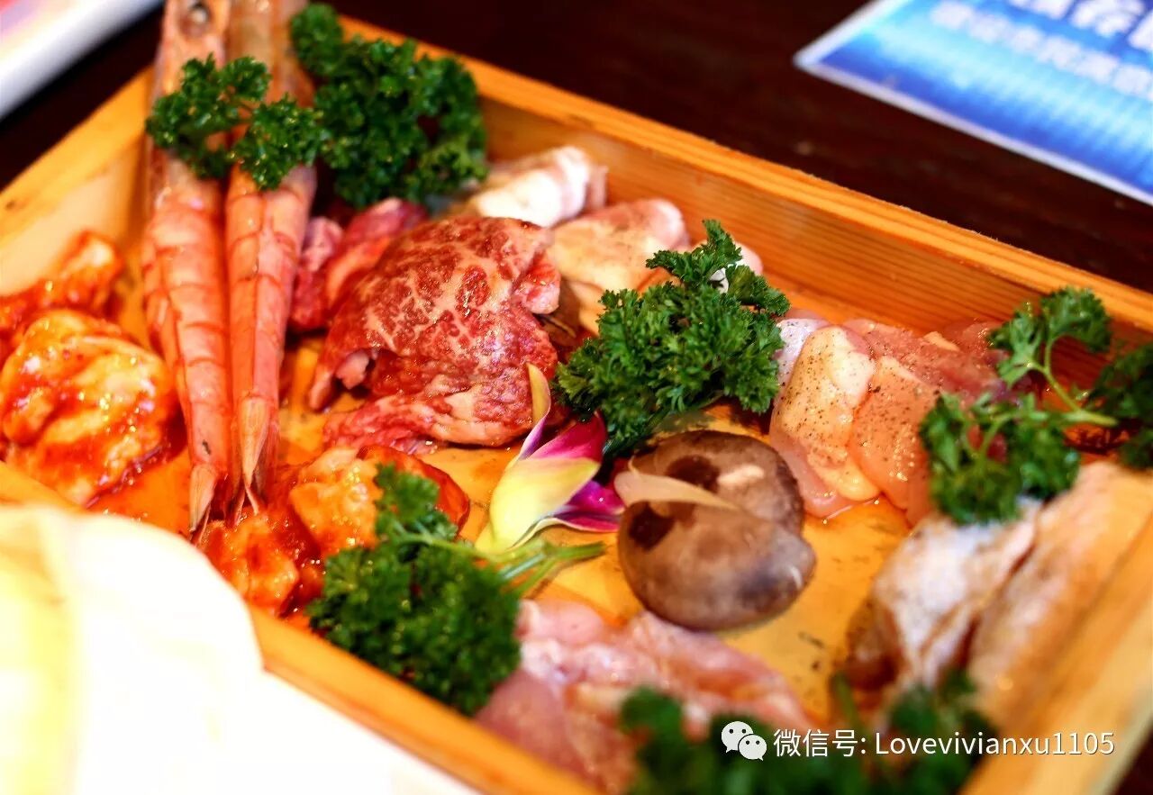 猪五花肉×3块,鸡腿肉 50g、牛肋条50g、上等牛大肠50g、牛肚领50g、猪颈肉×3块、鸡翅 1根、特选上等牛腩50g、虾2只、蔬菜少量。