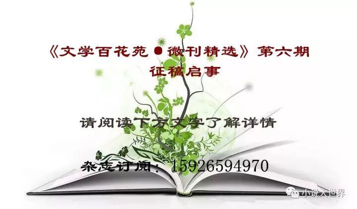 5、 投稿时请附带作者简介和近期生活照, 凡大作已被其他微信公众平台发布过的作品,请勿再投《 文学百花园》及《小说大世界》 谢谢支持。