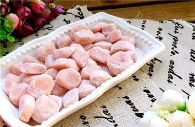 制法:橘红研细末,与白糖和匀为馅;米粉以水少许湿润,以橘红为馅做成糕,放蒸锅屉布上蒸熟,冷后压实,切为夹心方块米糕。