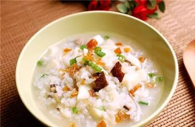 配方:熟冬笋100克,猪肉末50克,粳米100克,麻油25克。