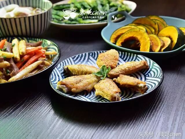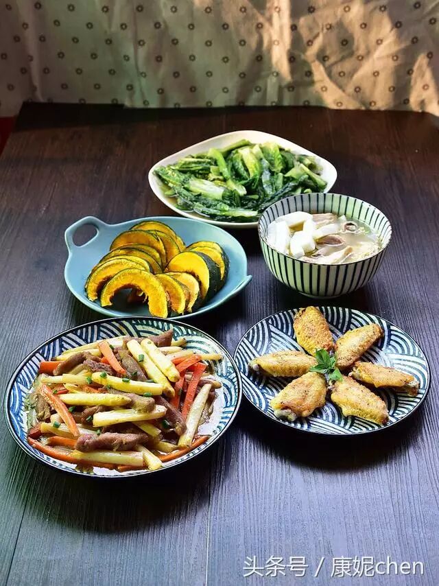 孩子看了我做的晚餐,一张张拍照发朋友圈,边拍边说:“妈,鸡翅是否烤的,金黄金黄的。”我:“不是呀,只放了盐,盐煎鸡翅。”孩子又指着牛肉说:“这盘是什么炒牛肉?”“白芦笋胡萝卜炒牛肉。”孩子总结道:“妈,你做菜越来越有创意,各种搭配都那么新颖。”