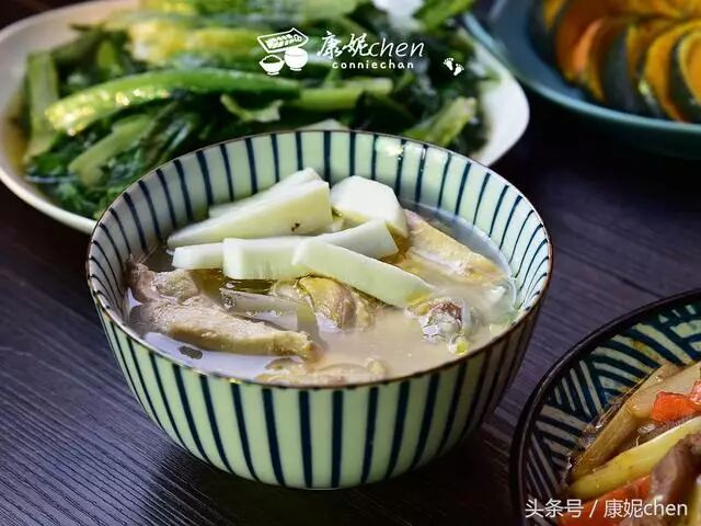 鸡斩件,去掉鸡脖子,椰子肉切小块,把鸡块、椰子肉、姜片和水放进汤锅,我用的是电炖锅,按下电炖锅的鸡汤功能键,等汤锅工作完毕,放盐调味就可以喝到清润的椰子鸡汤。