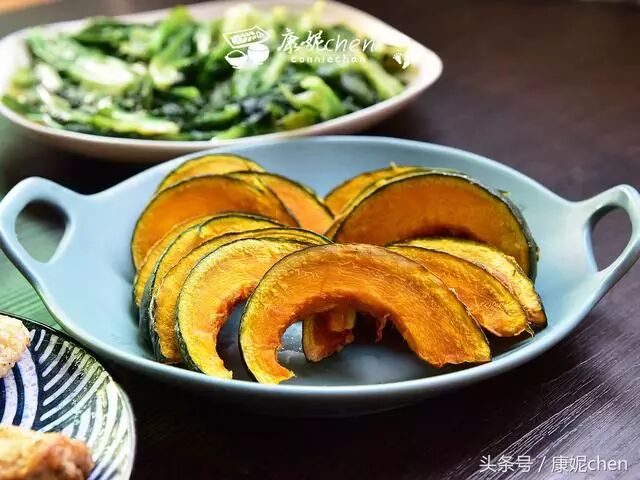 图片里是烤南瓜,这南瓜端上桌人人都爱吃,做法可以点击: 南瓜这么做好吃得皮都吃掉,不用油更健康,小孩多吃促进生长发育