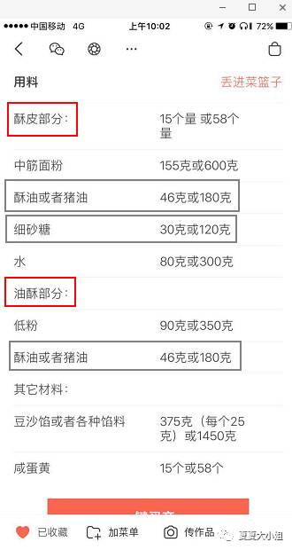 先让我们看看方子,挑选了最普通的蛋黄酥的方子: