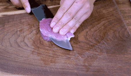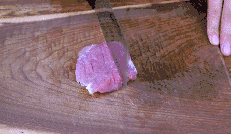猪里脊洗净后分切成厚1.5cm的肉片。