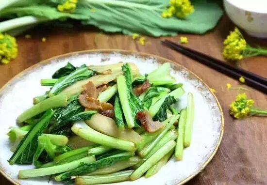 迟心菜总是素面朝天地散布在人们的锅碗瓢盆间,豁达地滋养着人们的心灵,愈久愈香。“三天不见青,喉咙冒火星”中的“青”,指的就是迟菜心,煮之快熟,嚼之爽脆,尝之甜美,吃起来无渣,非一般菜心可及。迟菜心的吃法颇多,可清煮清炒,也可加肉片、猪肝、鸡杂、鱼松之类拌炒,有人用其茎斜切成段片炒腊味也非常好吃。