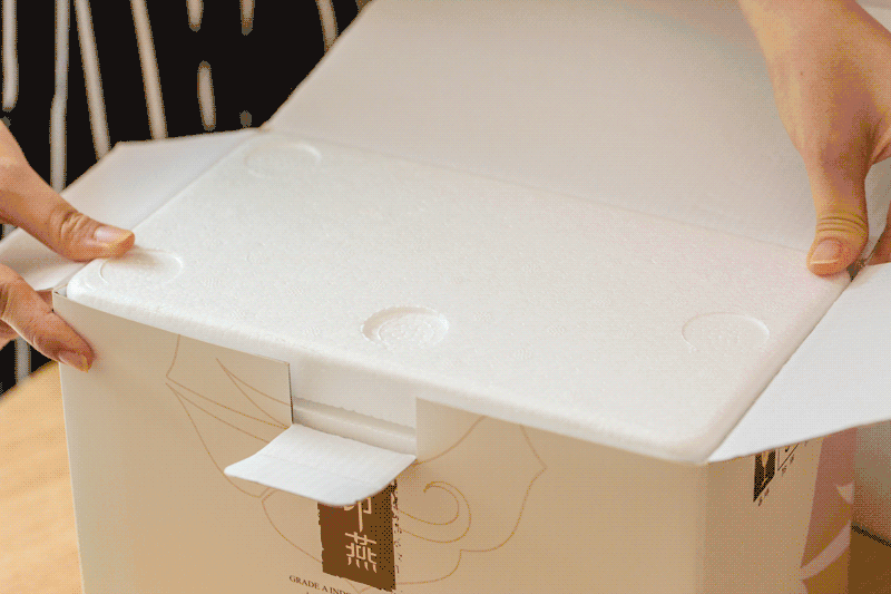 除了纯正印尼货,纯人工鲜炖也是他家的招牌,即食燕窝最适合作息不定时的白领啦~一品印燕主要做线上配送,包装就感到诚意满满,很靠谱:泡沫箱、真空包装、冰袋,顺风快递送达,打开包装完好无缺,瓶身还是凉凉的,放在冰箱能保存7天。