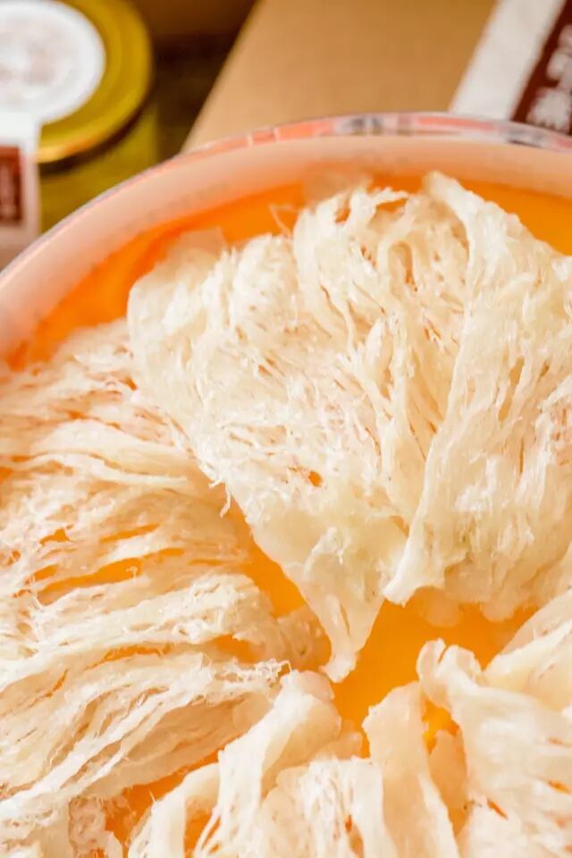 1、真正的燕窝在泡开后或在灯光下观看,都不完全透明,而是半透明状;