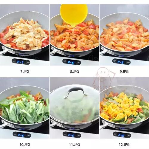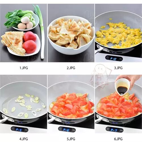 原料:西红柿2个,鸡蛋3个,油菜4-5棵,烙饼400克,葱1小段