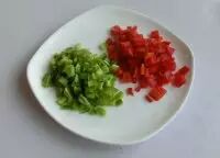 9.炒至茄子入味后,放入青、红椒丁,翻炒均匀后出锅
