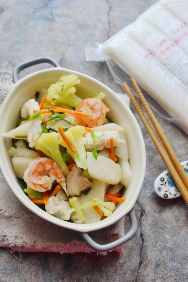 年糕烫至刚软就可以,过凉是为了防粘。 鱼露是最好的海鲜菜搭档
