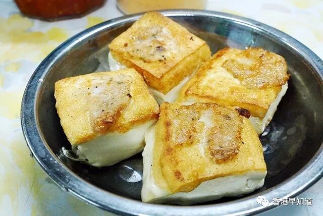 港式臭豆腐,不像長沙黑色的臭豆腐那樣濃烈的臭味,溫和得要加點甜醬辣醬來提升豆腐的味道,也沒有長沙的油膩,港式臭豆腐炸得幹幹的,外皮酥脆,口感獨特。