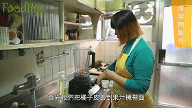 首先将橘子皮用榨汁机打成泥,这样接触面会更广,清洁力度会更强。