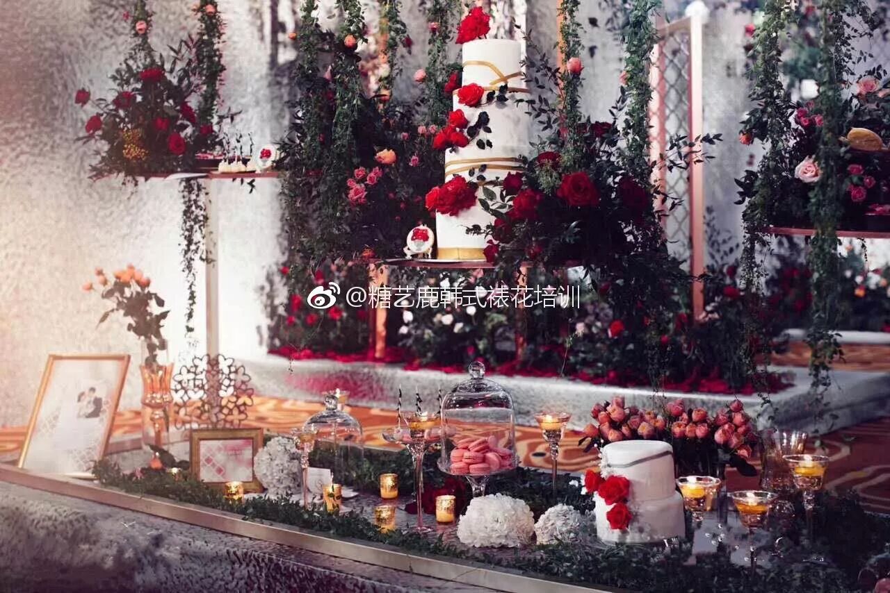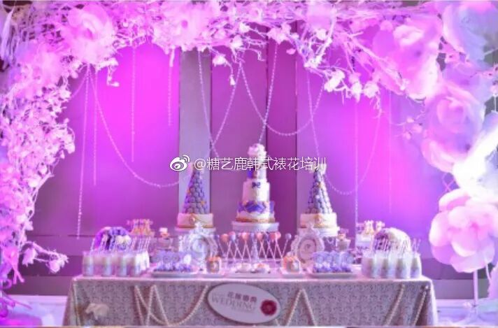 婚礼中的甜品台由很多种甜品组成,是婚礼上最甜蜜的焦点。一般是主视觉蛋糕加其他甜品。传统蛋糕和杯子蛋糕都可以作为主视觉蛋糕。也可以说,甜品台是婚礼蛋糕或者杯子蛋糕的升级版