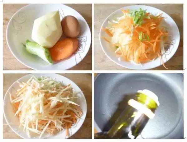 食材:土豆一个、胡萝卜一小段、葱适量、鸡蛋一个