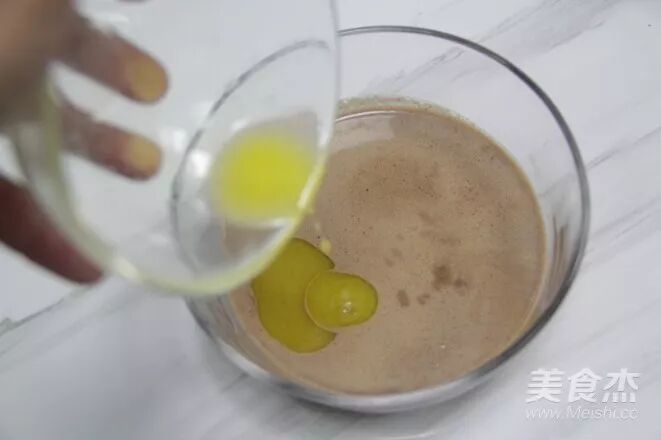 筛入低筋面粉和可可粉搅拌至无颗粒