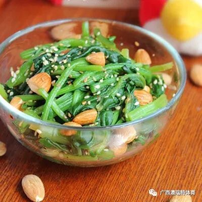 主料:菠菜250克、杏仁1小把、白芝麻15克、食盐1勺、生抽2勺、陈醋1勺、白糖1/2勺、香油几滴、水适量。