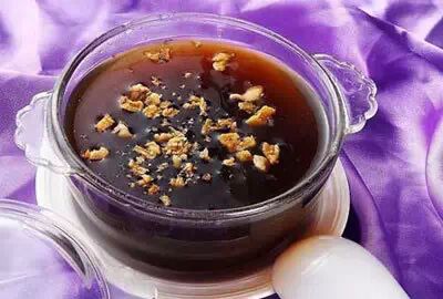 做法:将蜜枣去核,洗净,沥干水分;与核桃仁、白糖一起下锅小火炖煮;待汤羹黏稠、核桃绵软即可关火食用。此甜汤滋补肝肾、润肺生津、养血润发。