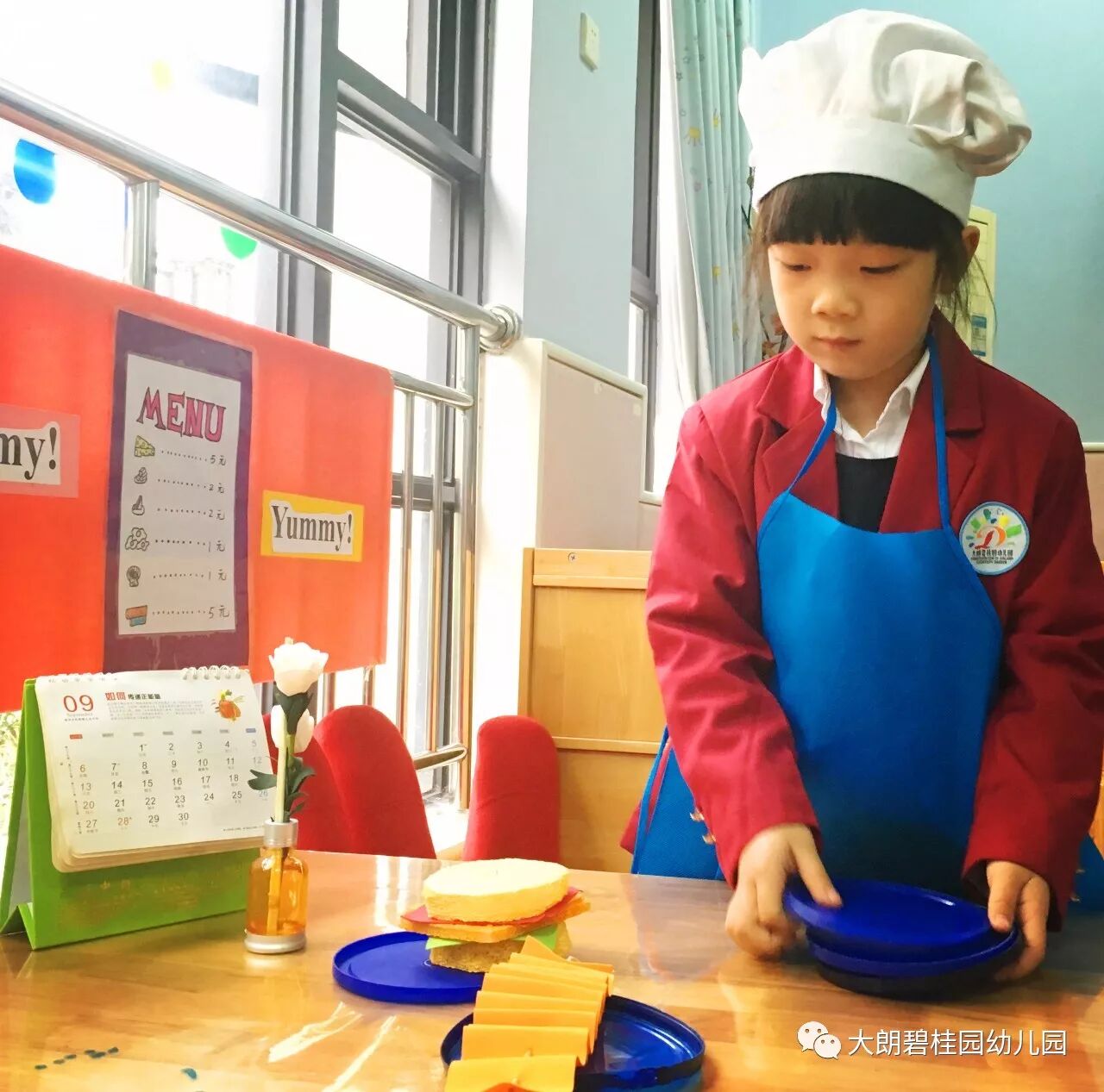 一到下午的区域活动时间,钻进美食店里的孩子特别多。有的喜欢当老板,有的喜欢当服务员,有的特别喜欢当客人来点餐,还有几个小女生喜欢当厨师呢!戴起围裙和厨师帽,真的是一板一眼,都是传神的小厨师!看看那些孩子们认真的模样,真的觉得太有趣了!
