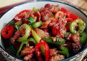 五花肉(适量)、红尖椒(适量)、青尖椒(适量)
