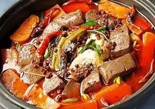 鸭血(250克)、黄豆芽(150克)、莴笋(100克)、黑鱼片(100克)、黄鳝(100克)、火腿(150克)