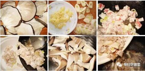 2. 솥을 불위에 재설정, 기름을 태워 핫, 마지막 파를 넣어 볶은 炒出 향기, 버섯 슬라이스를 넣고, 파슬리, 소금, 간장, 속히 볶음, 쟁반에 밥을 재설정, 한구석에는 조갯살 볶음 요리는 의 중간 수