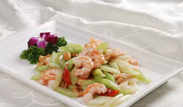 食材:虾仁 200克、西芹 200克、胡萝卜 半根、葱、姜 少许、料酒、盐、鸡精。