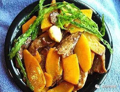 5. 솥에 뜨거운 기름에 먼저 고기 볶음, 변색 까지, 떠내다. 솥에 기름을 재가열, 호박 슬라이스를 넣고 볶음, 모서리, 모서리 조금씩 천천히 물을 섞어 볶음(단번에 말고 물을 모두 쏟아 넣었다면 삶은 호박 했다, 맛이 부족하다). 호박 때까지 익으면, 떠내다. 작은 그릇에 생 즙 솥에 부어, 끓은 후 잠깐 끓여 삽으로 뒤져 있다, 비교로 끓여 걸쭉하게 때, 쇠고기 부어 호박 슬라이스, 마늘 다진 것, 함께 골고루 지져, 마지막으로, 다진 파슬리 부어, 고르게 볶아낸다