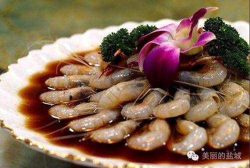 生炝条虾 条虾是盐城沿海地区的特产。制法独特:将生虾先加盐、曲酒杀菌去腥后,再加入腐乳汁、白酱油、白糖等辅料,即可食用。此菜尤以清明前食用最佳。