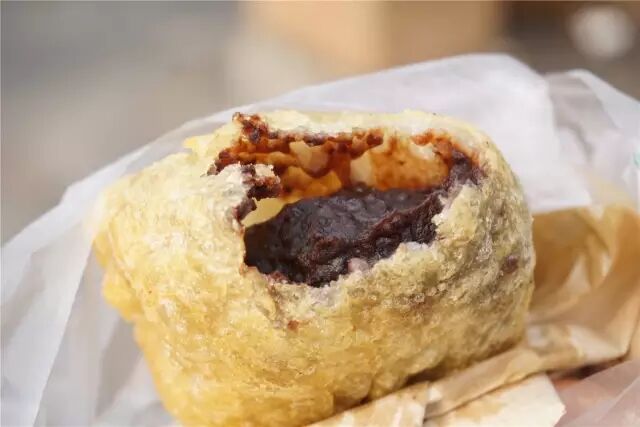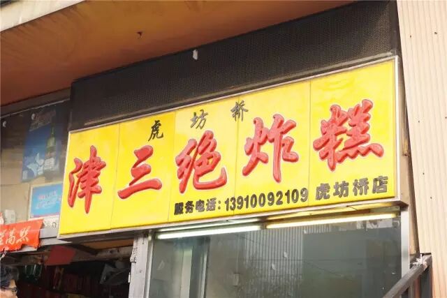 虎坊桥的炸糕有两家特别火,一个京天红,一个津三绝~小编先看见的就是津三绝,就在工人文化宫正对面,炸糕两块五一个,皮儿薄馅儿大,皮炸得脆脆的,里面的豆沙馅很多,甜甜糯糯的特好吃。