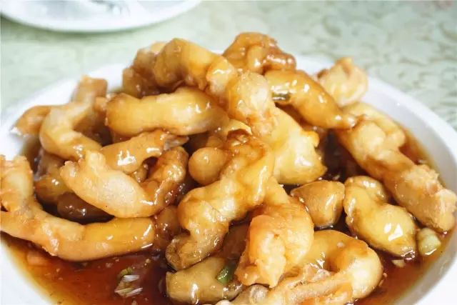 他最有名的就是糖醋里脊,厚厚的里脊肉裹上一层薄薄的面糊,搭上酸甜的糖醋汁,外酥里嫩,别提多好吃了!