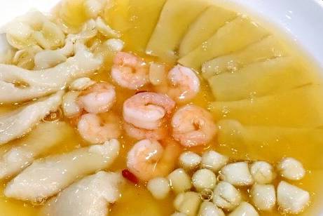 冒什锦做得实在地道,香香辣辣的冒菜,里面丰富的百叶,鸭血,黄喉,腰花,鸭胗......吃起来感觉和毛血旺差不多~黄喉切的很薄,又脆又嫩。连底下的豆芽都特别入味~