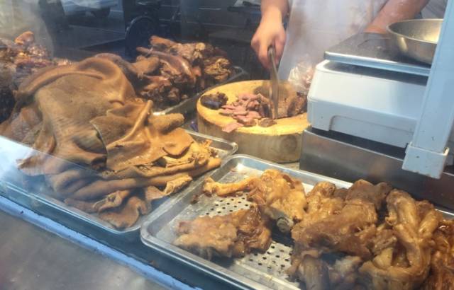 小店就在虎坊桥的马路边儿,外带的人很多,要排队,有牛肉口条酱牛肉之类的,感觉都是老北京人多。