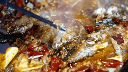 上桌的烤鱼在炭火的熏陶下再次沸腾,一股香味随着烟气直往外冒,把肠胃勾引的蠢蠢欲动。