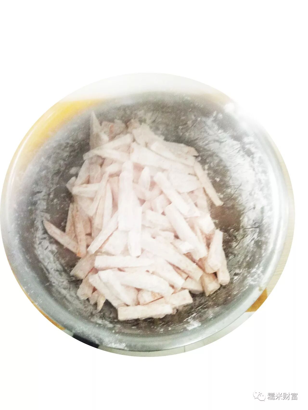 2放入盆中均匀的洒上干淀粉
