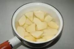 1.苹果洗净去皮去核切滚刀块,放进加了少许食盐的清水中略泡