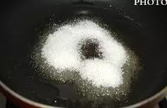5.另取一锅,放少许油,加入白糖,小火慢慢熬制,待糖化且变浅黄色后关火