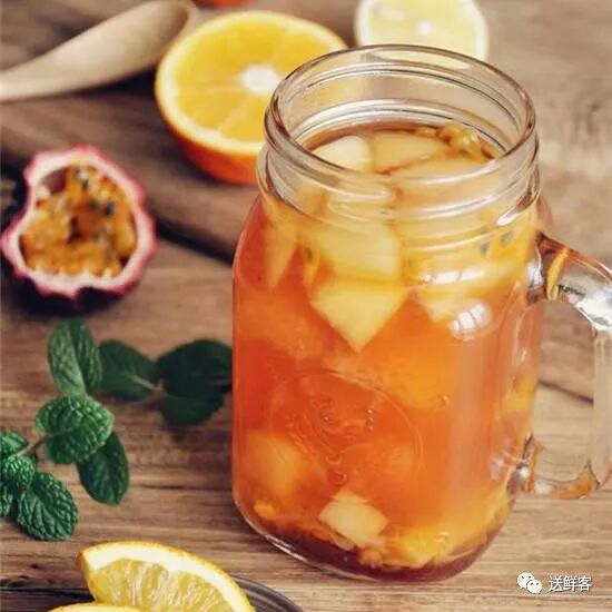 5、待茶汤不那么热后加入百香果即可饮用。另外,放两三个小时后味道会释放得更充分,更香甜好喝哦。
