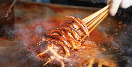 花甲粉丝、烤鸭肠、臭豆腐、茶汤、章鱼小丸子
