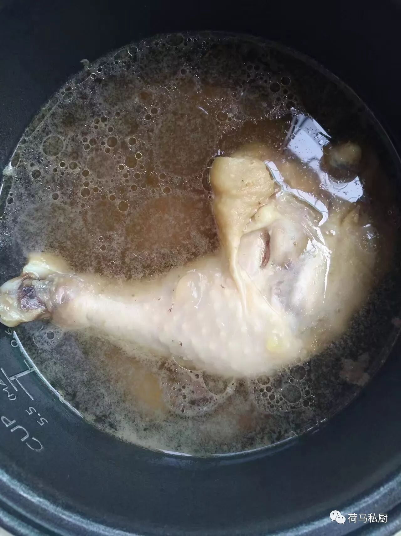 3.自然冷确后,打开,这时候这个汤就好了,过滤之后可以作为高汤使用;