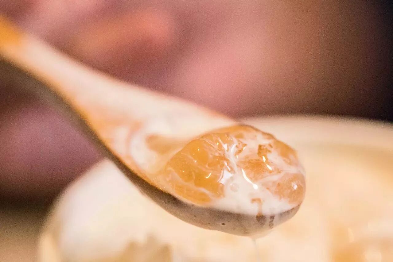 蜜黄的桃胶,乳白的银耳,加上各种数也数不清的莲子红豆等至少五六中配料,满满一口都是幸福感。而且甜度刚刚好,不会过分甜腻。养生甜品控一定要试试啊!