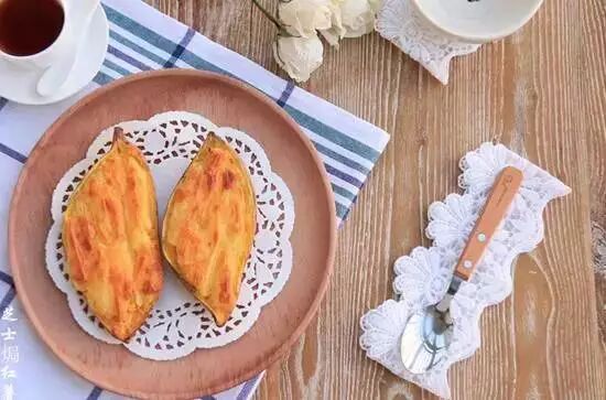 【材料】红薯1个(约250g),芝士1片,黄油25g,白糖20g,牛奶30ml,蛋黄1个(刷在表面用)