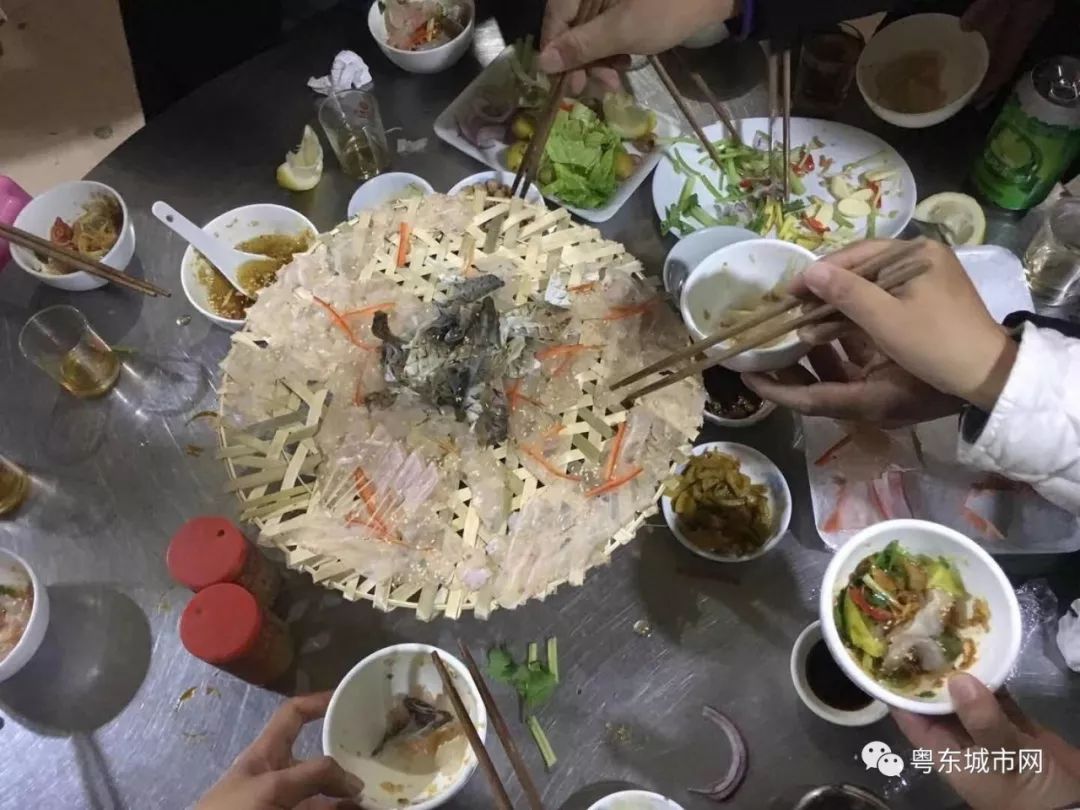 再之是清·李调元《南越笔记》载:“粤俗嗜鱼生以初出水泼刺者……去其皮刺,洗其血腥,细脍之以为生,红肌白理,轻可吹起,薄如蝉翼,两两相比,沃以老醪,和以椒芷,入口冰融,至甘旨矣。”清乾隆周硕勋《潮州府志》称,在潮州“蚝生,虾生,鱼生之类,辄为至味。”对于鱼脍的美誉,古人在诗词中从不吝以赞叹例如:白鱼如切玉,朱橘不论钱、无声细下飞碎雪,有骨已剁嘴春葱、鲜鲫银丝脍,香芹碧涧羹等等。