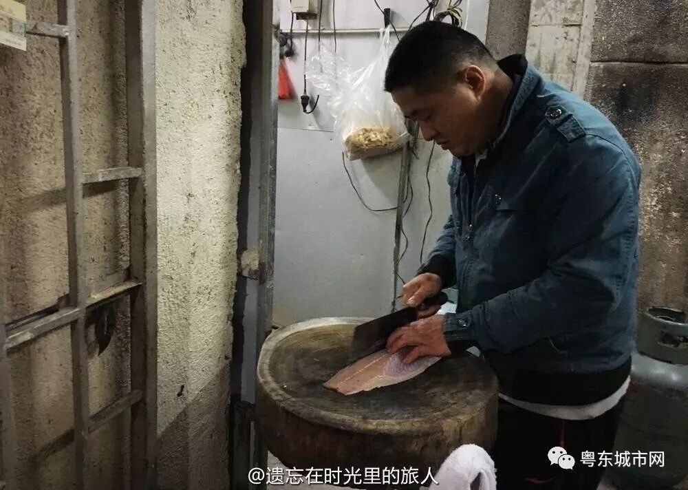 鱼生,在古代的中国其食用历史及范围是相当之广,但如今主要保留在中国的局部地区,例如潮汕、顺德、广西桂南等。而潮州鱼生,则以官塘鱼生最负盛名。适逢夜到潮州府城,夜行牌坊街再到外江梨园公所饮茶品茗,夜深人静,恰好在公所路口有一家官塘鱼生,据介绍水准不错,当然不可错过品尝。潮州鱼生,是选洁净沙池饲养的草鱼,先在尾部切口放血,然后打鳞开肚,起出鱼背上两片没带骨刺的净肉,切去红肉。当然在这个过程中,重点是不能像菜市场上杀鱼一样,把鱼杀好冲水,而是要用干净的干布抹干,再将两条鱼肉挂在通风处让寒冷的北风吹一吹。吃的时候用快刀切成薄如蝉翼的薄片,讲究地截薄排朗置放于竹篾上中间缀以鱼皮。