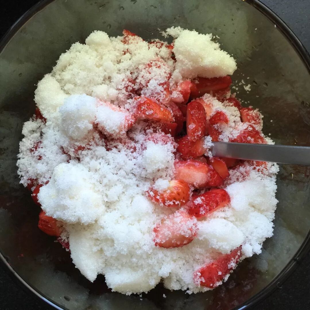 草莓果肉加入白糖混合,静置半小时让果胶析出。