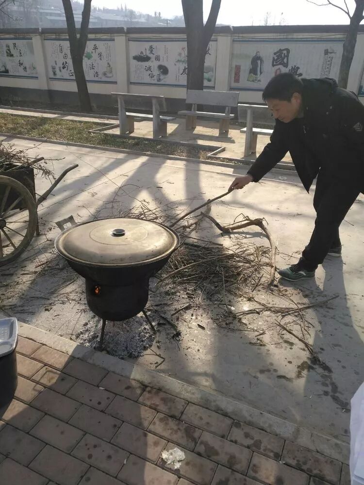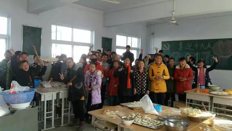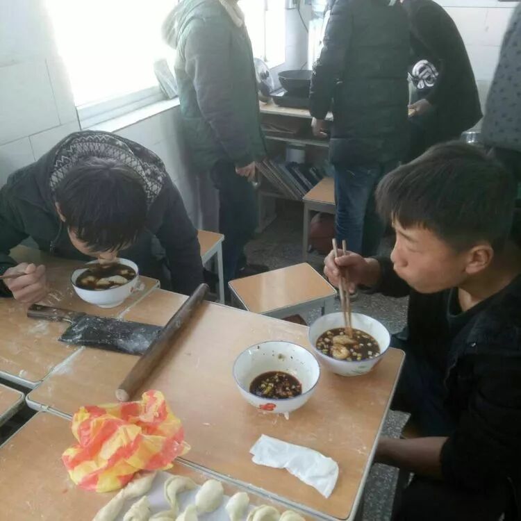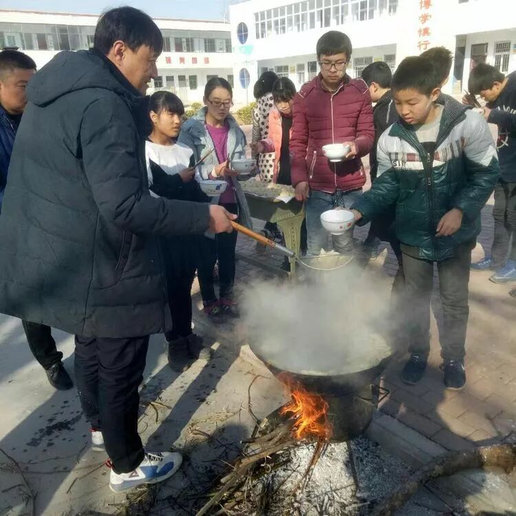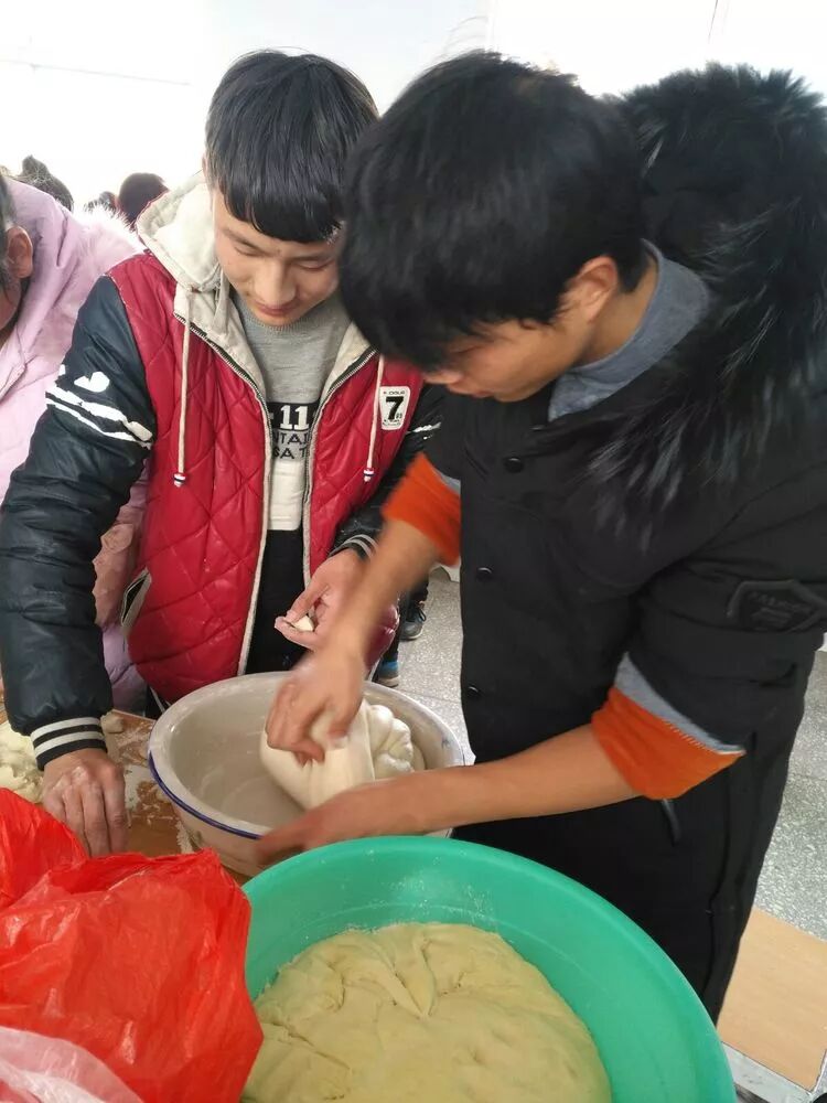 中心学校王生生主任、乡中茹灵成校长为了让学生尽快的吃上饺子,架起了灶台,茹校长烧火,王主任给学生下饺子、盛饺子,好温馨的场面,好感人呀!