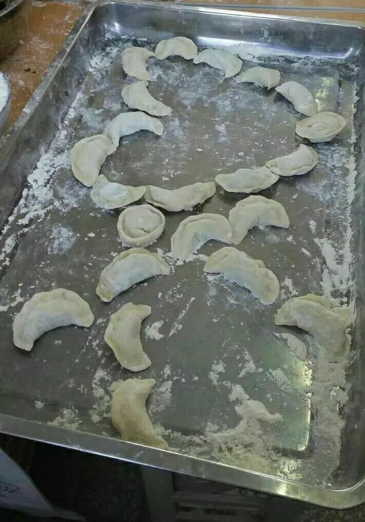 美味的饺子馅:有韭菜鸡蛋馅的,萝卜鸡蛋馅的,大葱猪肉馅的,让人垂涎欲流呀!