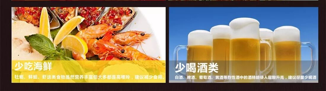 喝大众点评祛酸茶期间请严格控制高嘌呤食物的摄入,吃一顿富含嘌呤的饮食,类似于往血液中注射一剂尿酸,容易诱发痛风急性发作。尤其是啤酒,黄酒等酒类尽量不喝。因为大量饮用啤酒,产生的乳酸容易在体内堆积,影响尿酸从肾脏排出。